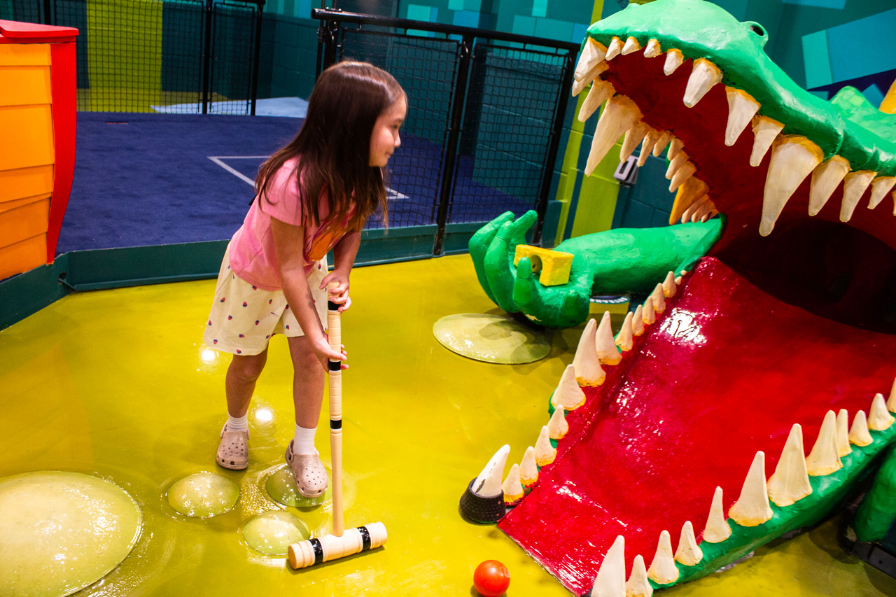 It's mini-golf with a twist! Guide your ball through obstacles and traps to be the one with the most cheese at the end! The mallets are big, the balls are bigger, and each zone will bring fun and challenges. You've played mini-golf, but have you tried Cheese Ball Croquet?