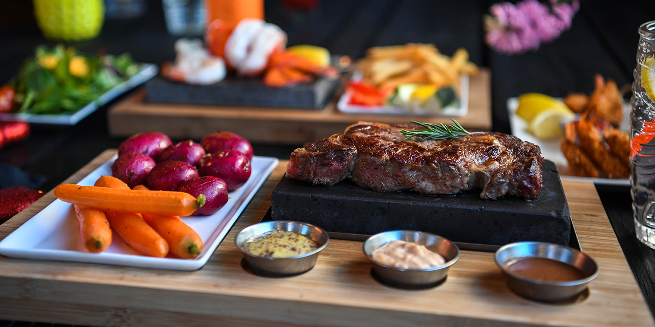 Hot Rocks - Sear. Sizzle. Savor. Discover excitement with this one-of-a-kind dining experience! Indulge in sizzling meals prepared on lava rocks, surrounded by an inviting tropical island atmosphere. Ideal for families seeking a fun-filled ambiance, delectable cuisine, and island-inspired drinks.